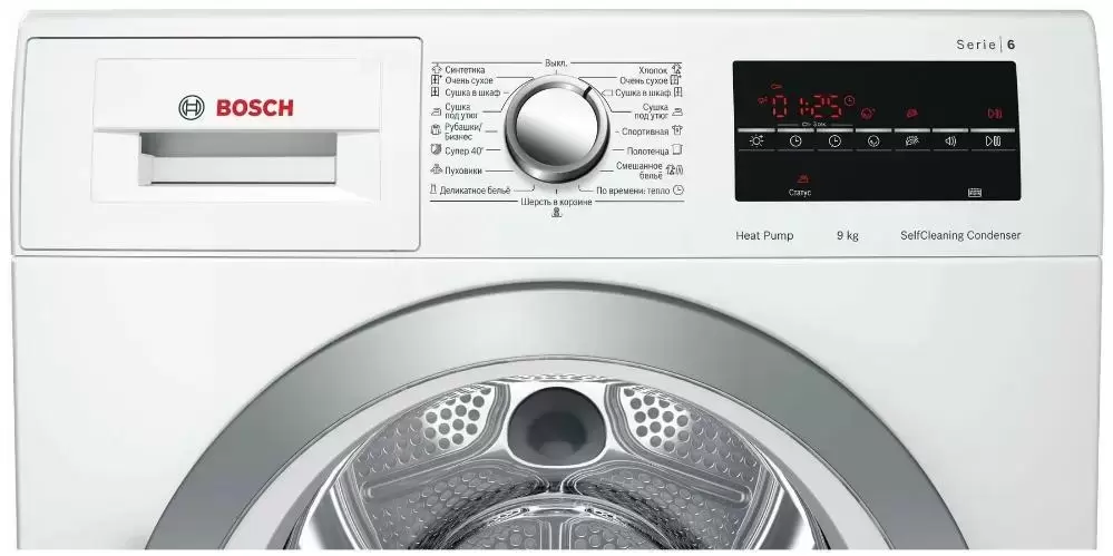 Оснащена сушка по времени, сушка в корзине и самоочистка конденсатора.