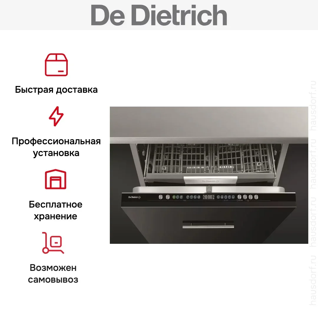 Встраиваемая посудомоечная машина De Dietrich DBJ434DQA — флагманская модель в линейке De Dietrich (французского производства), посудомоечная машина премиального сегмента.