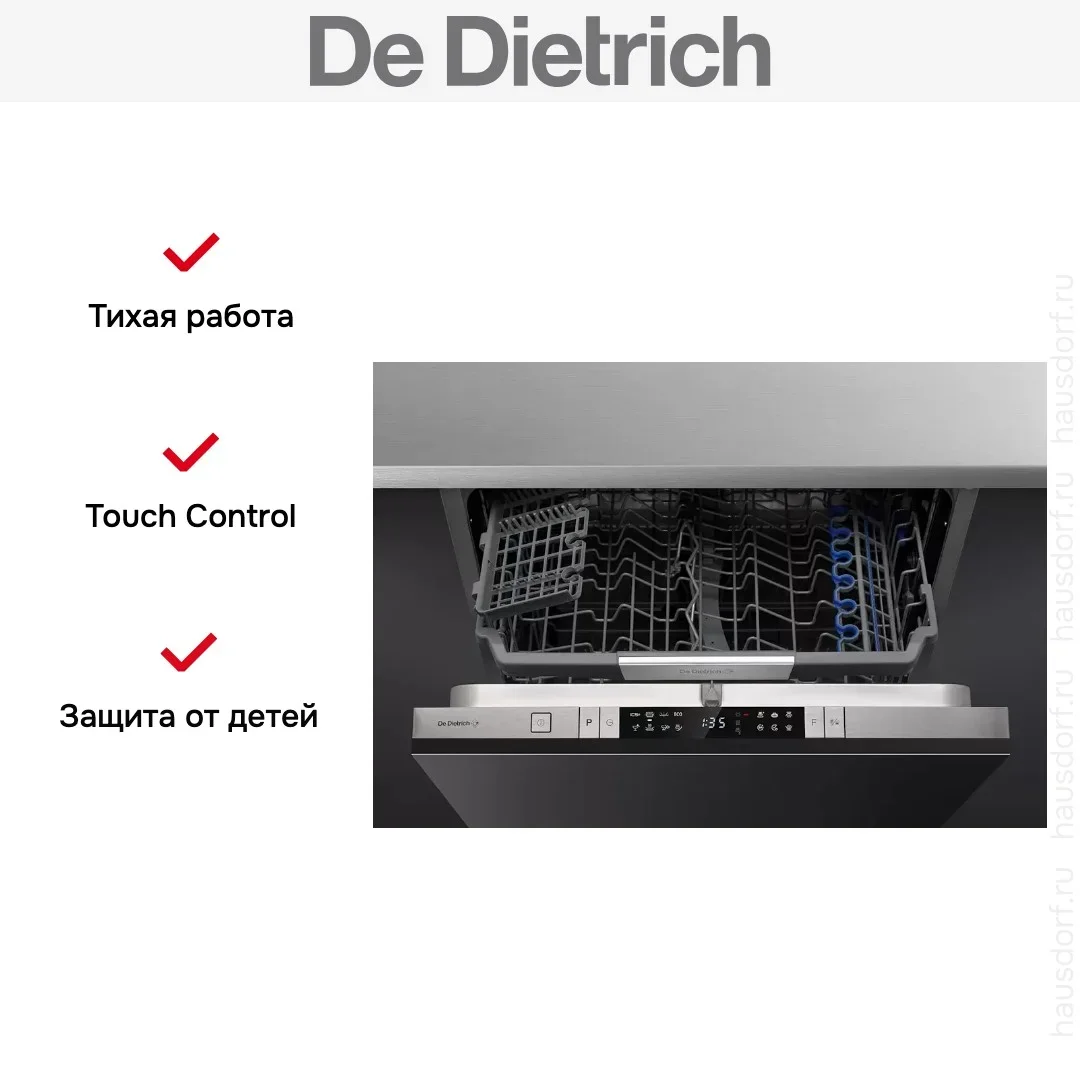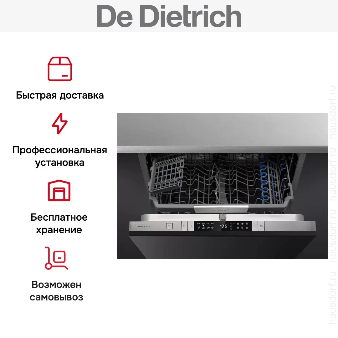 Встраиваемая посудомоечная машина De Dietrich DCJ424DQX — посудомоечная машина высшего класса, французского производства, сочетающая надёжность и передовые технологии De Dietrich.