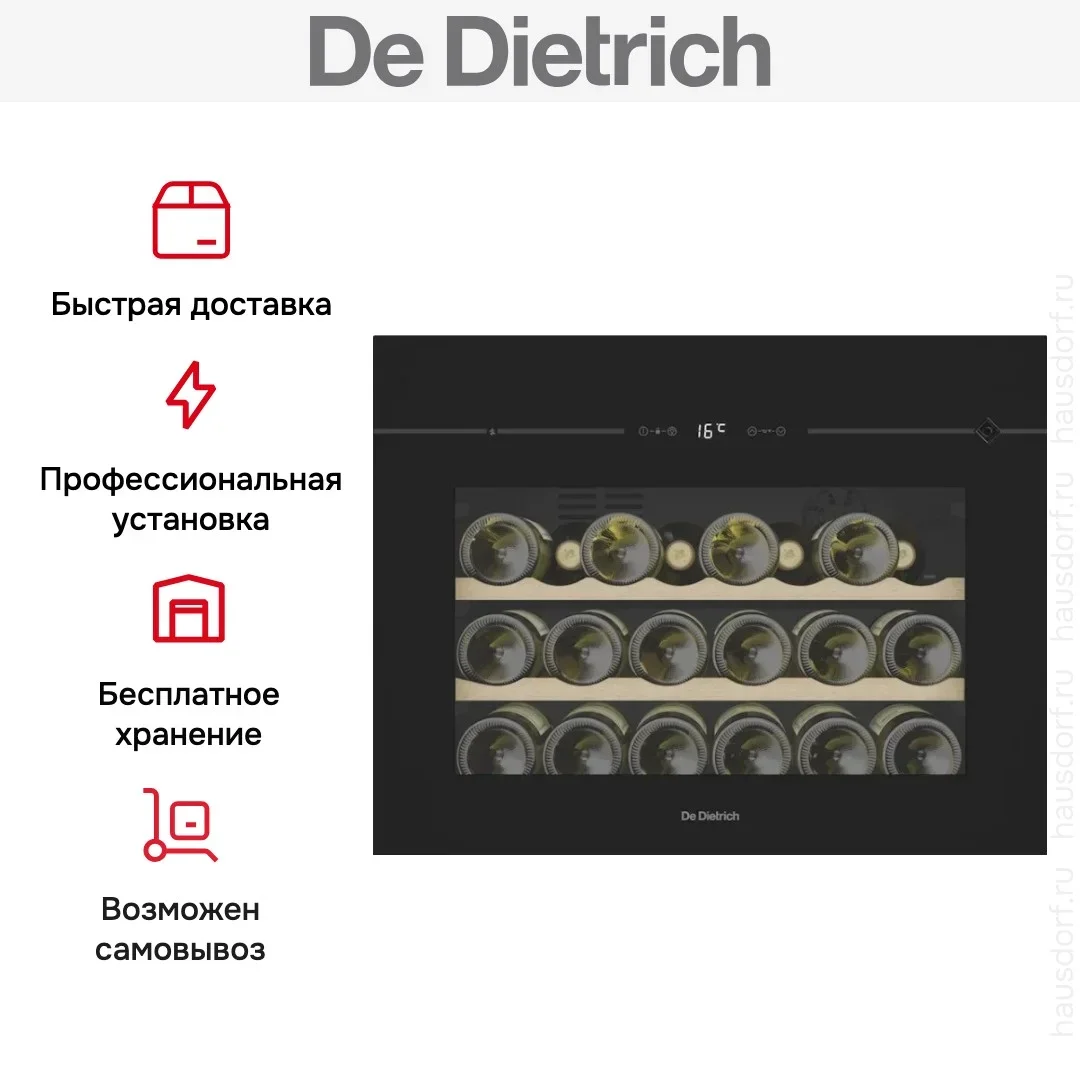 Встраиваемый винный шкаф De Dietrich DIW28FB — винный шкаф класса люкс, французского производства, сочетающий надёжность и передовые технологии De Dietrich.