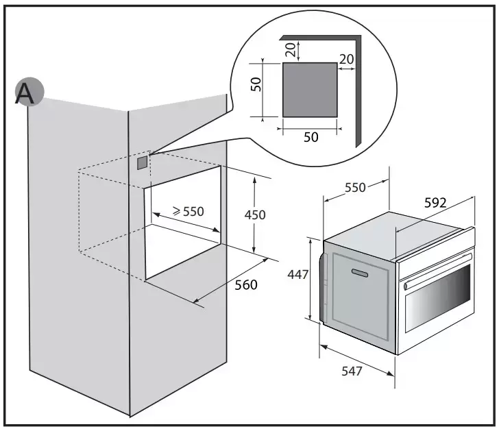 | Размеры ниши для встраивания (ВxШxГ) (cм) | 45х56х55 |