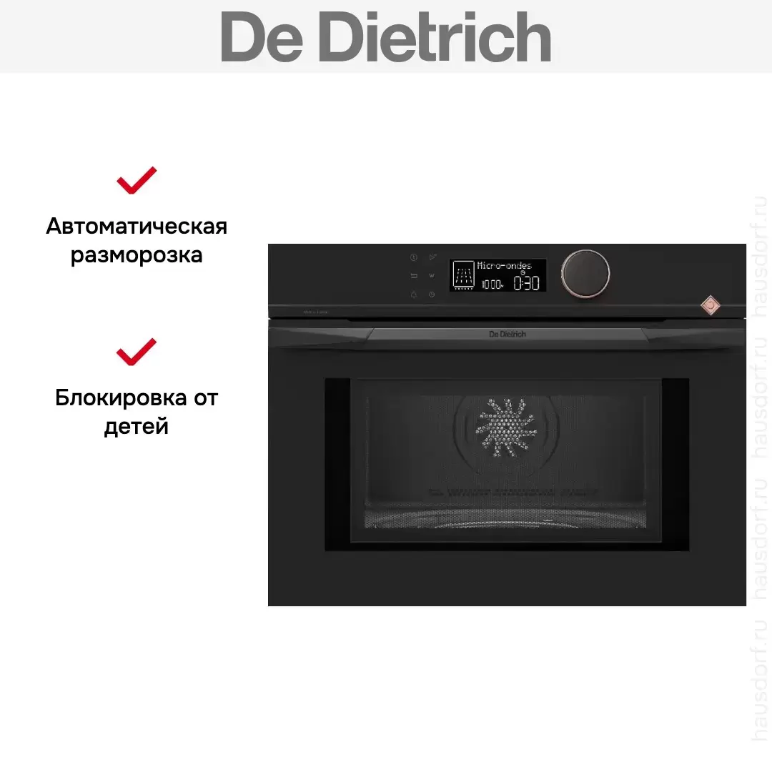 Встраиваемая микроволновая печь De Dietrich DKE4535H — микроволновая печь премиального сегмента, французского производства, сочетающая надёжность и передовые технологии De Dietrich.