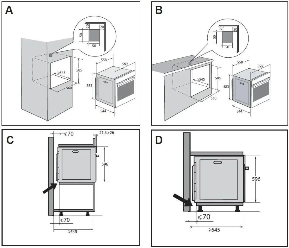 | Размеры ниши для встраивания, ВхШхГ (см) | 58.5х56х54.5 |