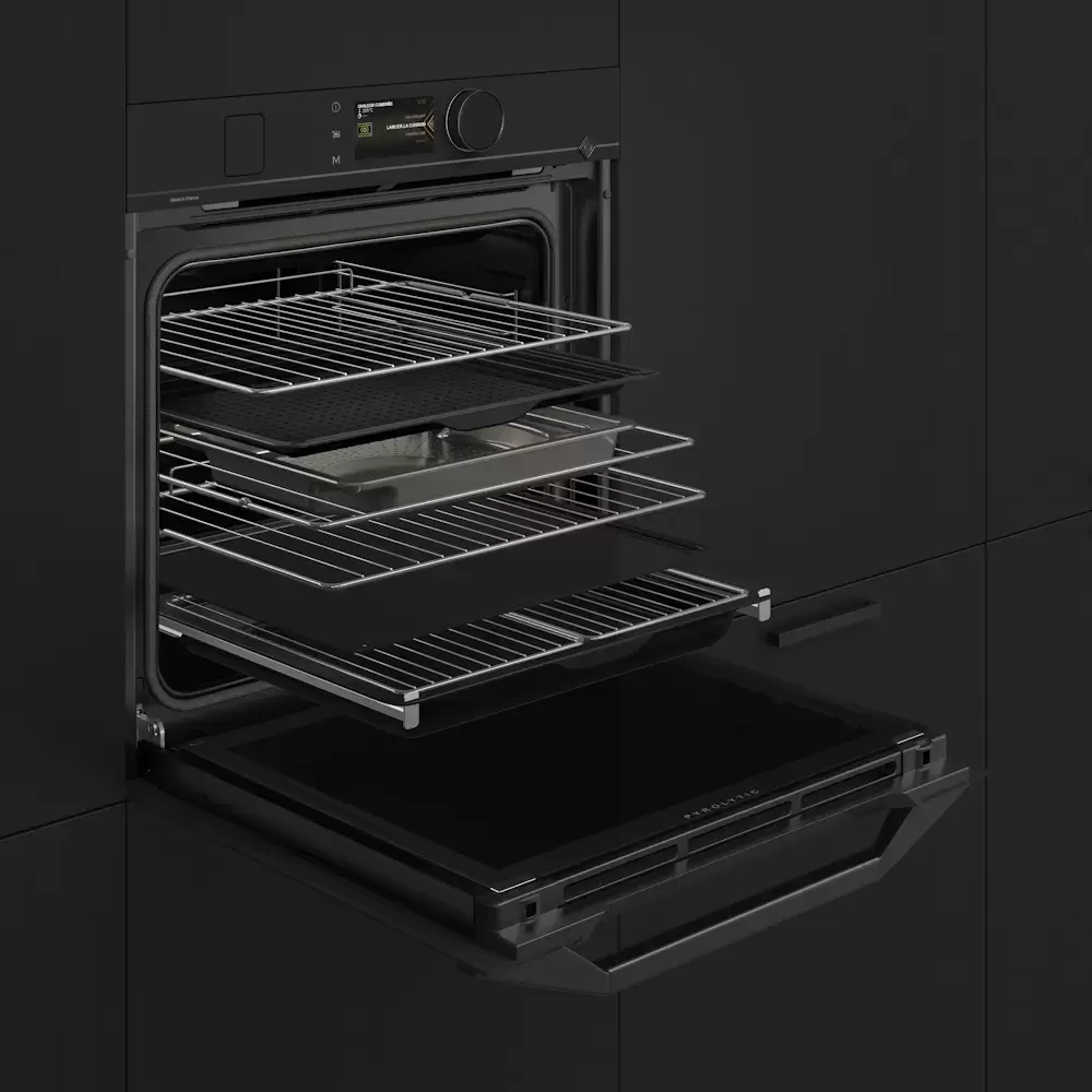 | Комплектация | Телескопические направляющие (1-уровневые) Решетка (2 шт) Противень Глубокий противень Перфорированный противень из стали Неперфорированный стальной противень |