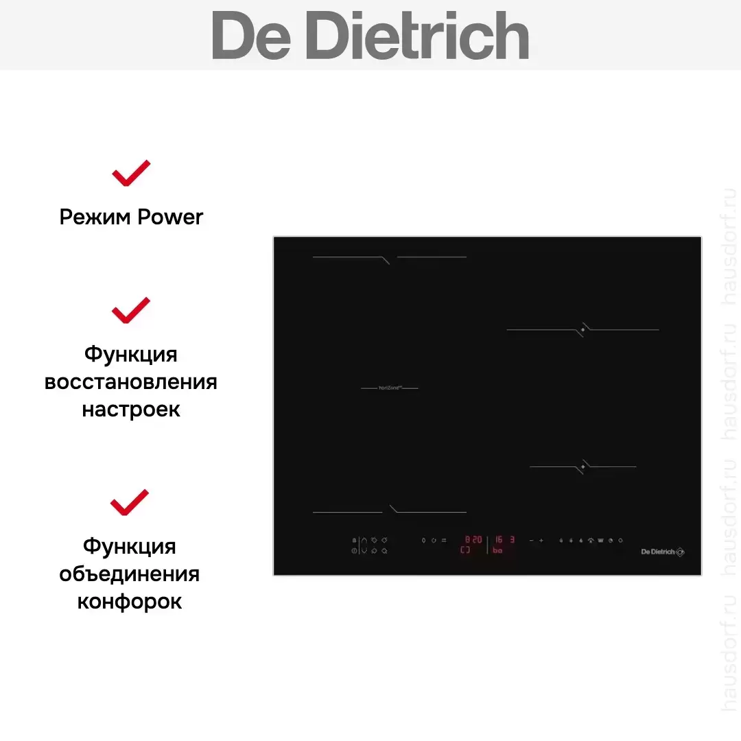 Индукционная варочная панель De Dietrich DPI4411B — флагманская модель в линейке De Dietrich (французского производства), варочная панель высшего класса.