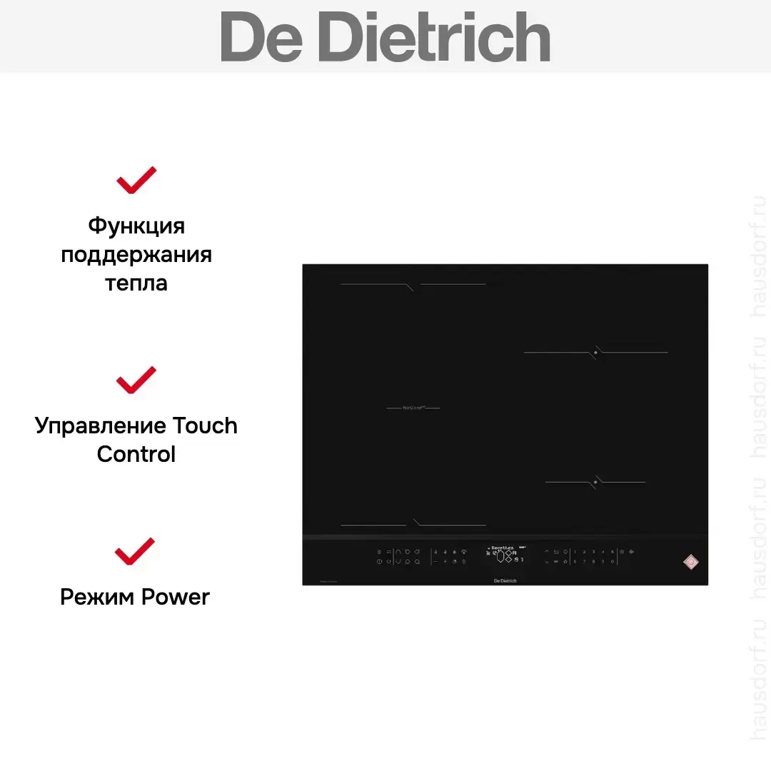 Индукционная варочная панель De Dietrich DPI4431H — флагманская модель в линейке De Dietrich (французского производства), варочная панель высшего класса.