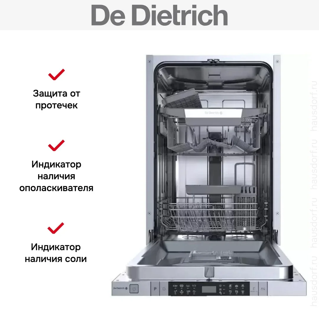 Встраиваемая посудомоечная машина De Dietrich DV301044J — флагманская модель в линейке De Dietrich (французского производства), посудомоечная машина высшего класса.