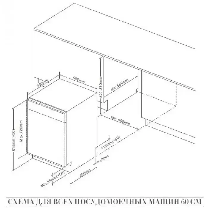 | Размеры ниши для встраивания (ВхШхГ) (см) | 82-87х60х58 |