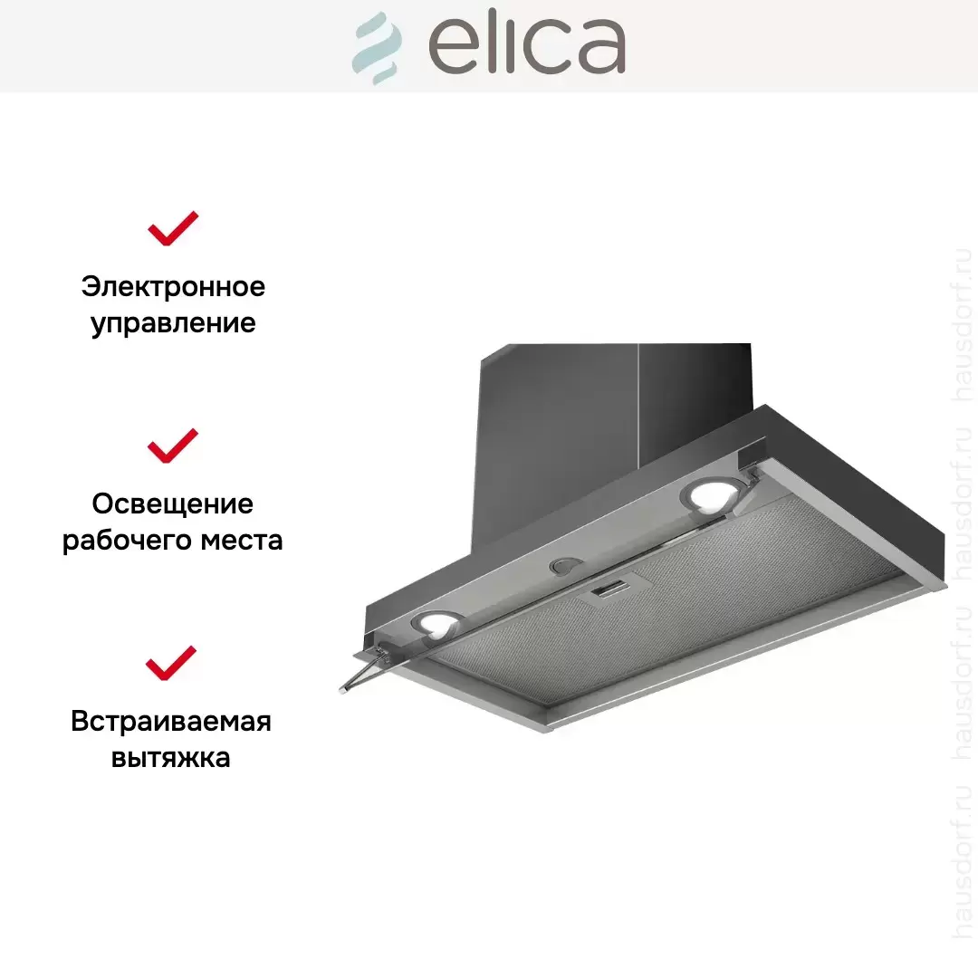 Тип вытяжки: встраиваемая. Тип управления: электронное.