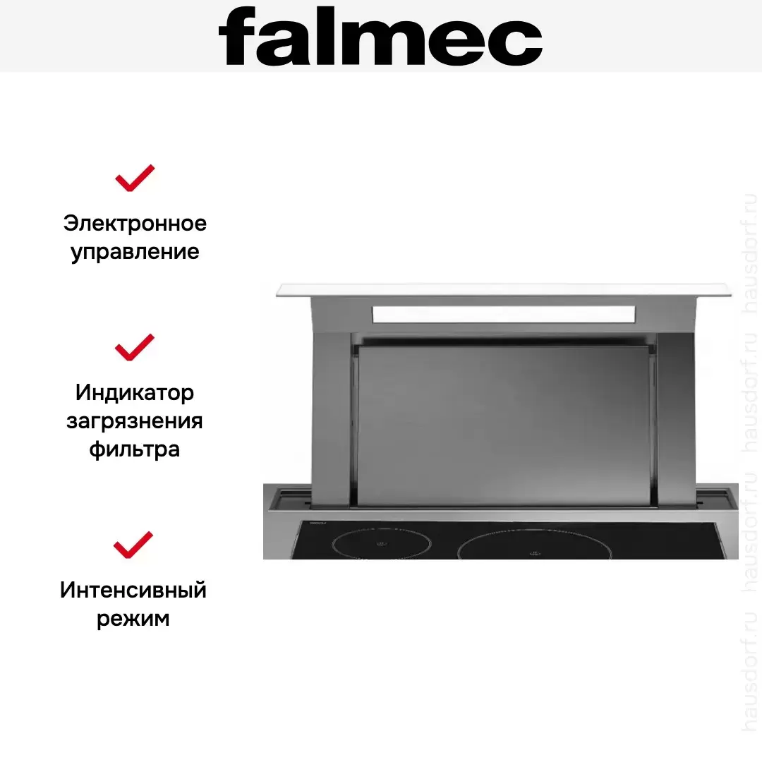 Встраиваемая вытяжка Falmec Down Draft 90 vetro ECP white — кухонная вытяжка высшего класса, итальянского производства, сочетающая надёжность и передовые технологии Falmec.