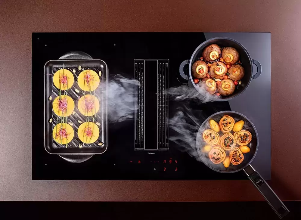 Варочная панель с вытяжкой Falmec ZERO 84 VETRO NERO — флагманская модель в линейке Falmec (итальянского производства), варочная панель премиального сегмента.