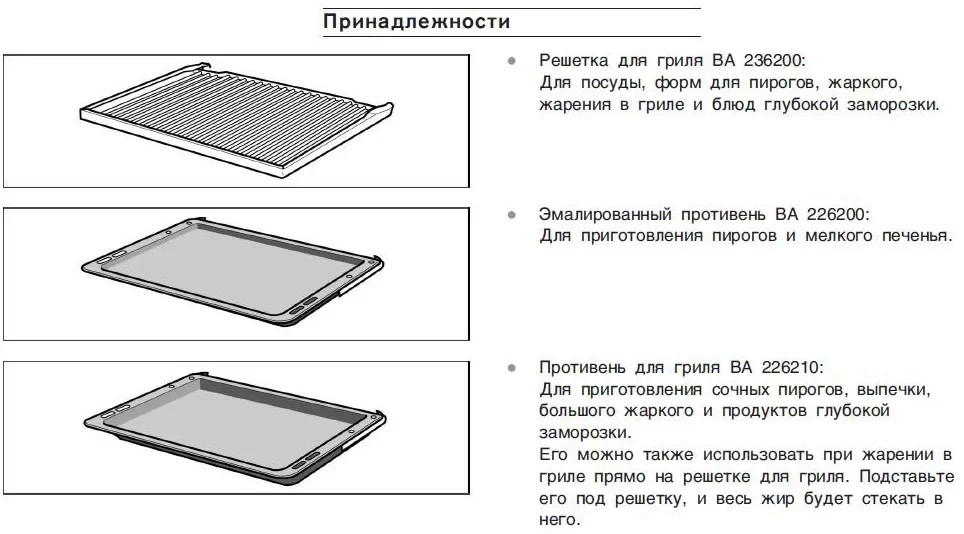 | Комплектация | Решетка, Противень для жарки / гриля, Противень для жира |