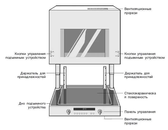 | Дополнительные параметры | Настенный монтаж, Новая система работы LiftMatic -при нажатии на клавишу основание духовки плавно опускается вниз, Дно духовки из стеклокерамики, Боковое галогенное освещение (2х10 Вт), Освещение сверху (40 Вт), Электронная установка точной температуры от 30* до 300*C с интервалом в 5*C, Жироулавливающий фильтр, Катализатор очистки воздуха |