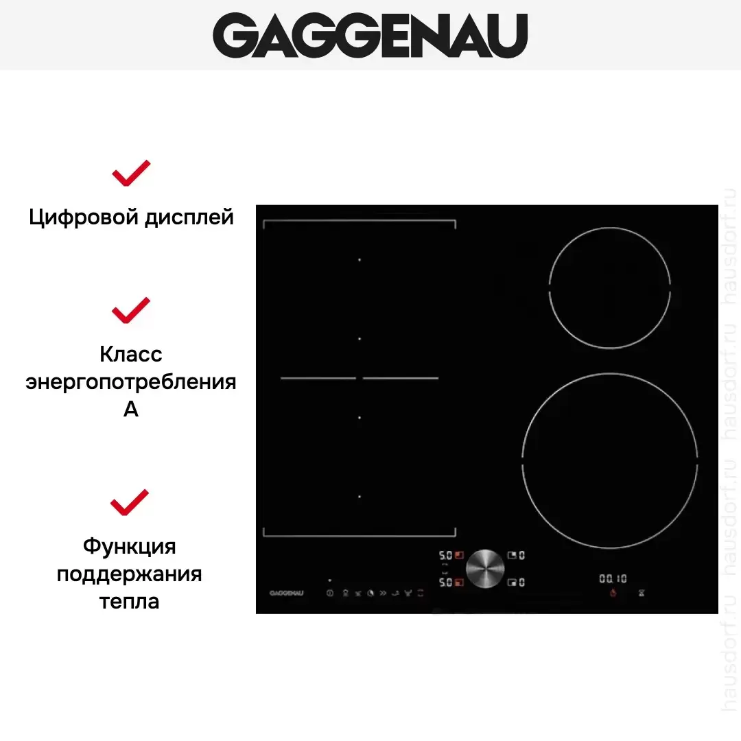| Дополнительные параметры | Возможность объединения прямоугольных конфорок в зону flex induction 38 x 23 см. Для встраивания на одном уровне со столешницей Свободное размещение посуды внутри зоны flex induction Панель управления Twist-Pad со съемным магнитным переключателем Удобное управление с помощью двух цветных дисплеев (белый / оранжевый) Функция Booster для кастрюль и сковород Функция Stopwatch Функция памяти Меню настройки |
