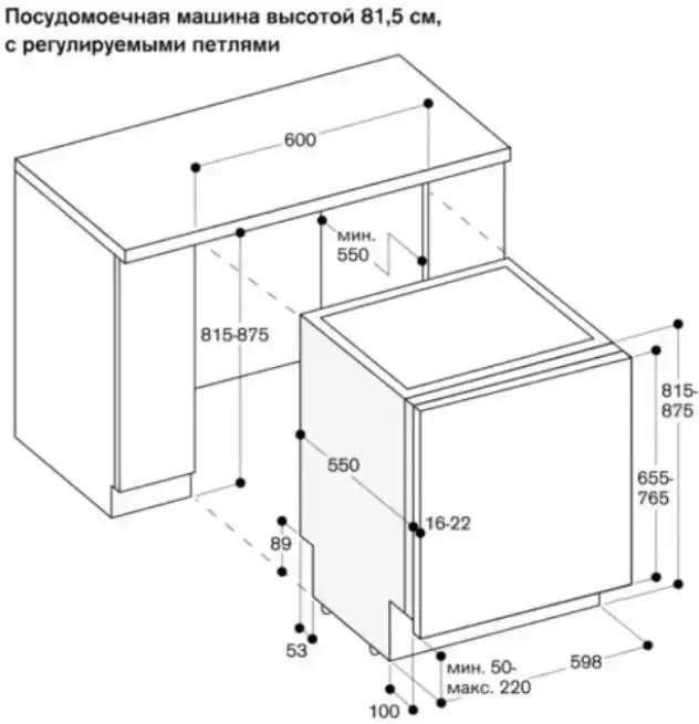 | Размеры ниши для встраивания (ВхШхГ) (см) | 81.5-87.5х60х55 |