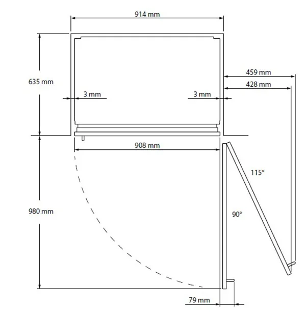 | Угол открывания двери (°) | 115 |