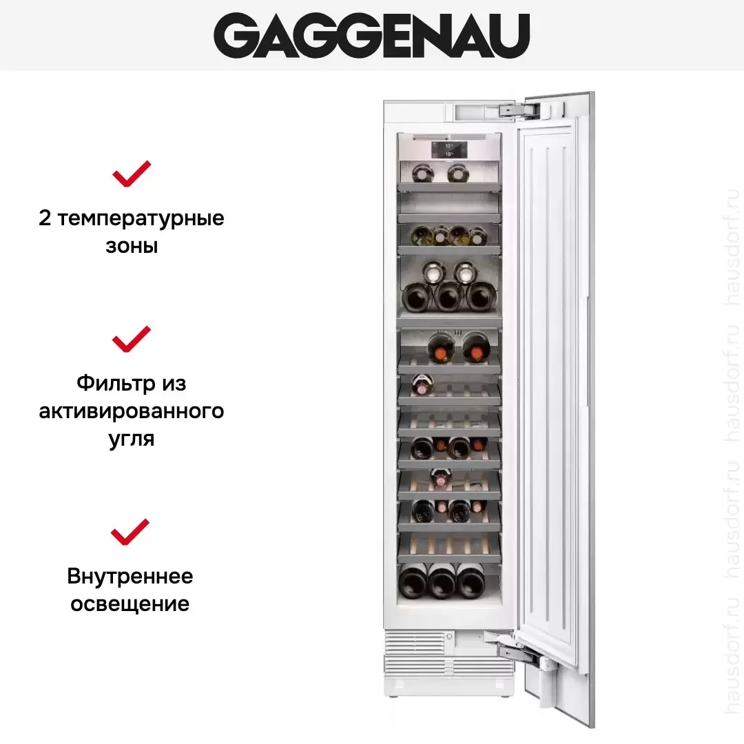 Полновстраиваемый винный шкаф Gaggenau RW414304 — винный шкаф премиального сегмента, немецкого производства, сочетающий надёжность и передовые технологии Gaggenau.