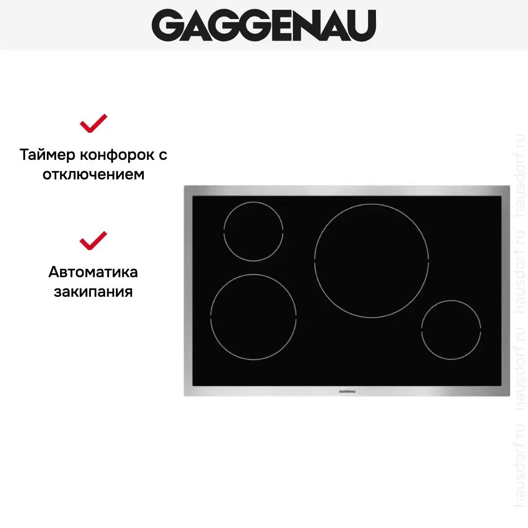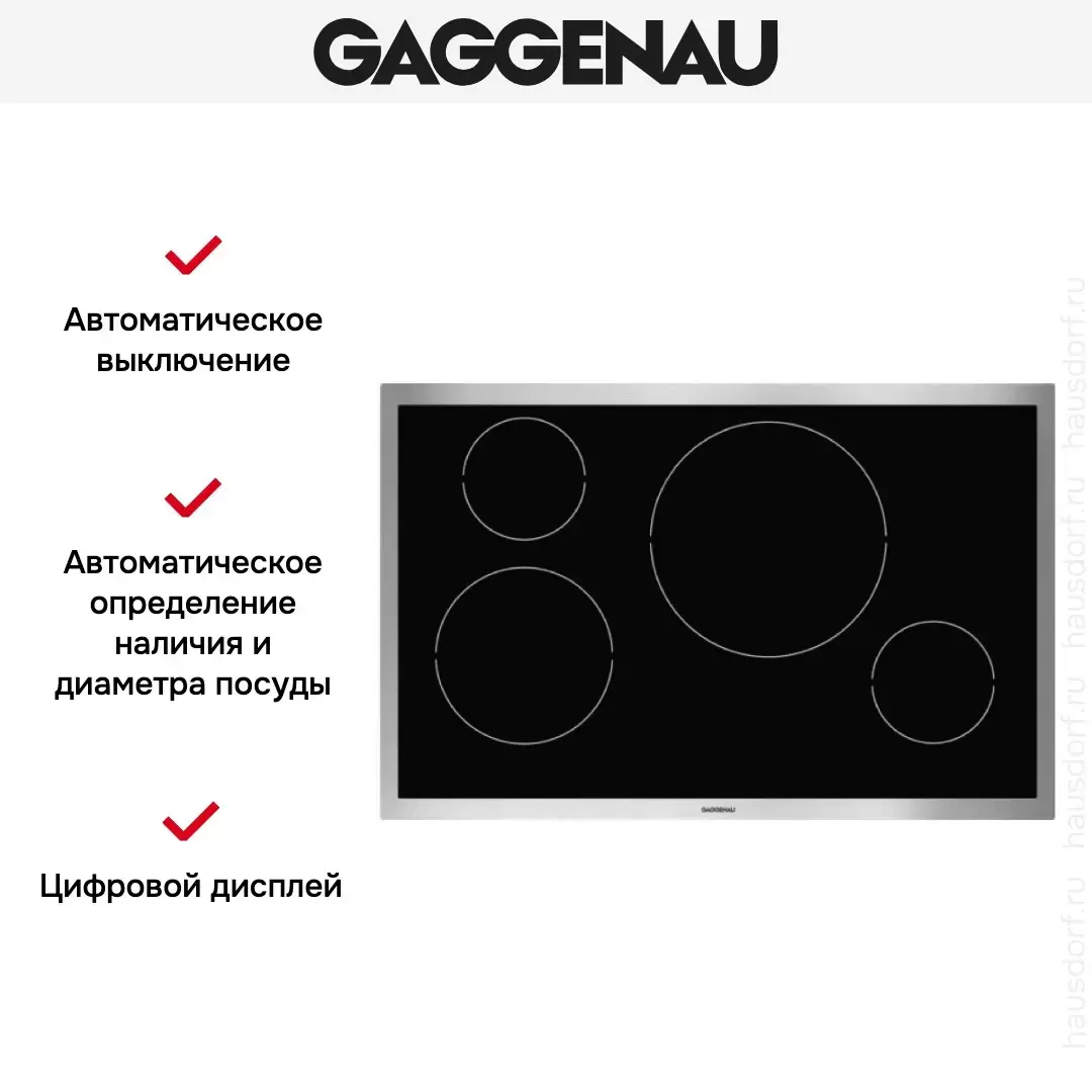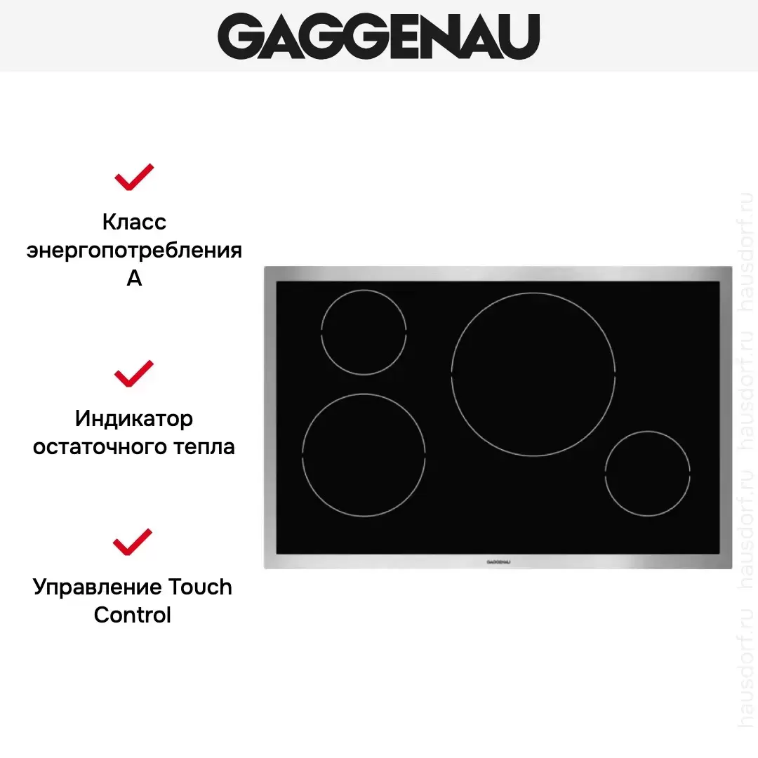 | Дополнительные параметры | Светящееся кольцо переключателей. Маркировка зон нагрева и уровней мощности. Функция Booster для всех зон нагрева. Высококачественная обработка: рама из 3 мм нержавеющей стали. |