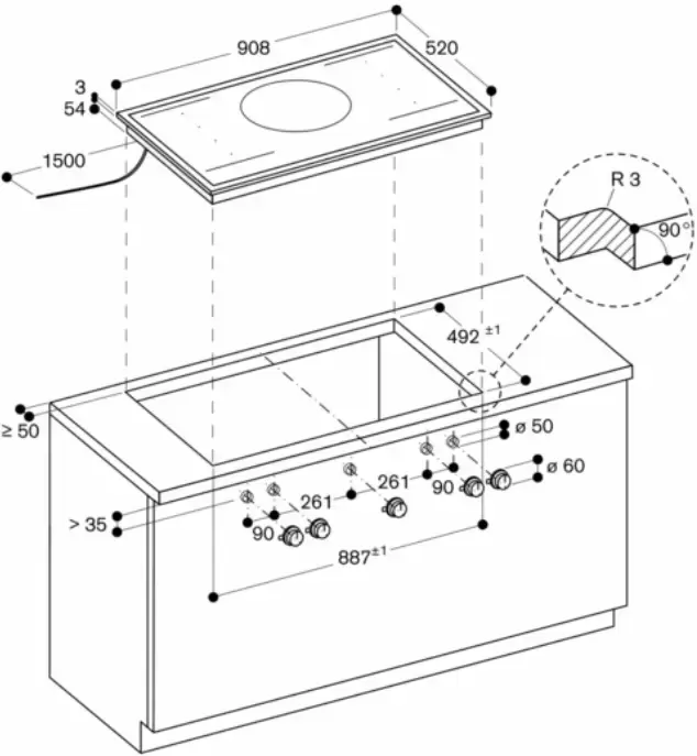 | Дополнительные параметры | Крепление прибора к столешнице производится снизу Свободное размещение посуды внутри зоны Flex Объединенная зона: 38x23 см (3300 Вт, с функцией Booster 3700 Вт) Двухцветный дисплей (белый / оранжевый) Маркировка индукционных конфорок Управление вытяжкой через варочную панель (вытяжка должна быть совместима с варочной панелью) Встроенный WiFi модуль для удаленного управления прибором с помощью смартфона (с помощью приложения Home Connect) Потребляемая мощность в режиме ожидания / сети: 1.9 Вт Сертификат соответствия AENOR, CE |