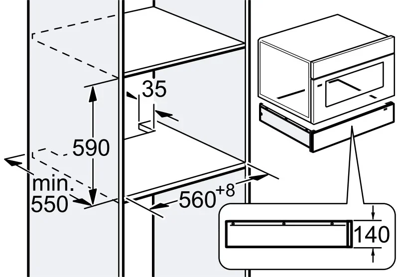 | Сочетается с приборами | BS*** / BM*** / CM*** Возможна установка непосредственно над WS в нише 59 см без промежуточной полки |