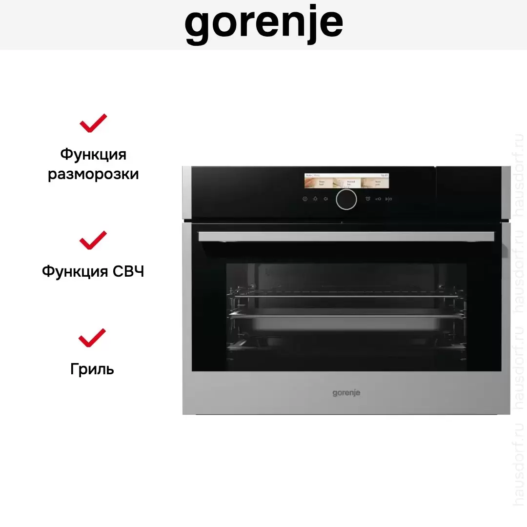 Компактная духовка с функцией пароварки и СВЧ Gorenje BCMS598S19X — духовой шкаф премиального сегмента, сочетающий надёжность и передовые технологии Gorenje.