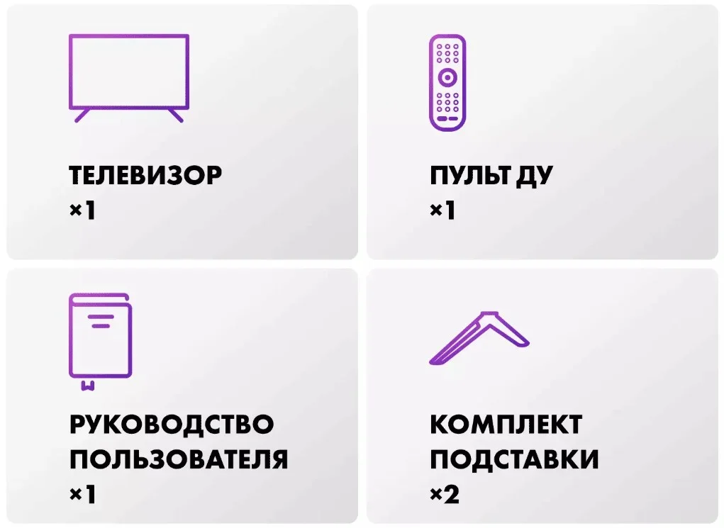 | В комплекте | Пульт ДУ Кабель питания Подставка Инструкция |