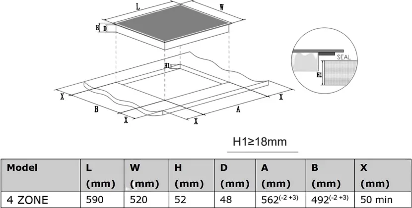 | Размеры ниши для встраивания (Ш х Г), см | 56х49 |
