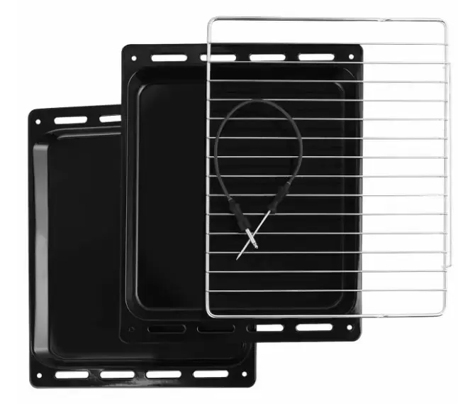 | Комплектация | Телескопические направляющие (2-уровневые) Решетка Решетка для гриля Термощуп Противень Противень для выпечки Глубокий противень |
