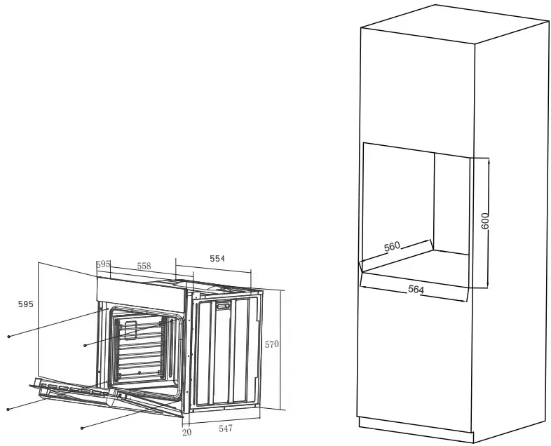 | Размеры ниши для встраивания, ВхШхГ (см) | 60х56.4х56 |