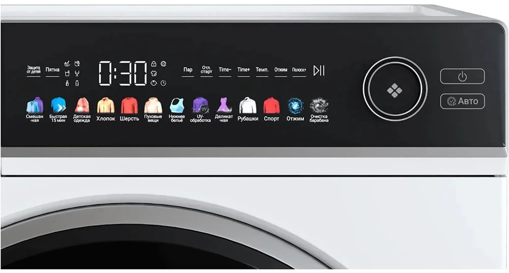 Оснащена функцией обычная экспресс-стирка (быстрая, ежедневная, короткая, освежить, экономичная, мини-программа).