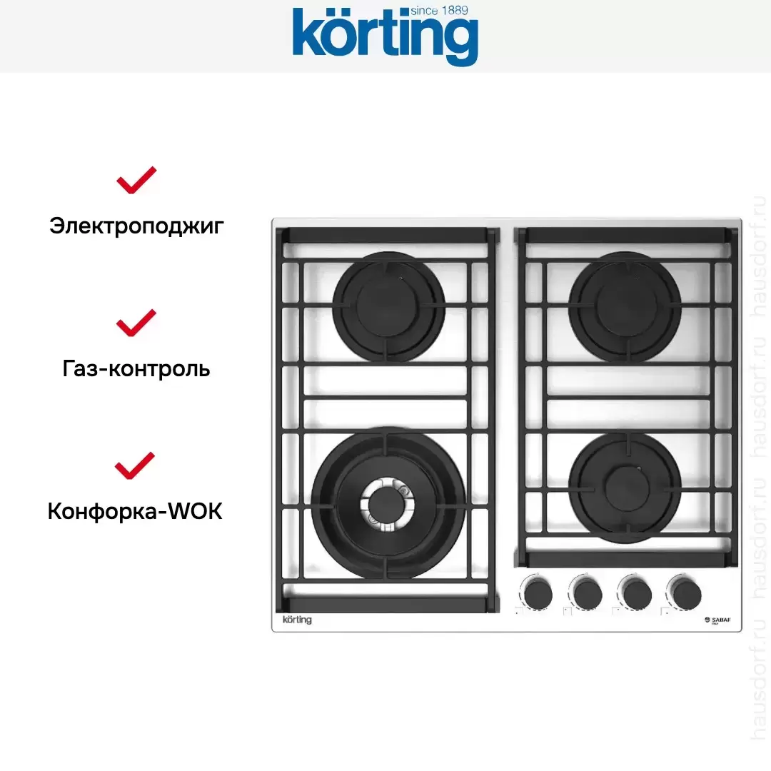 Газовая варочная панель Korting HG 6235 CTX — варочная панель премиум-класса, итальянского производства, сочетающая надёжность и передовые технологии Korting.