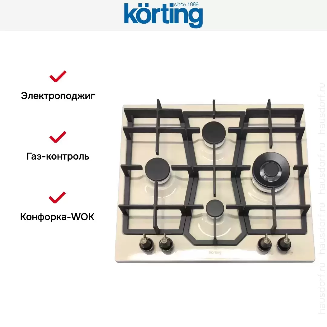 Газовая варочная панель Korting HG 631 CTRB — варочная панель высшего класса, итальянского производства, сочетающая надёжность и передовые технологии Korting.