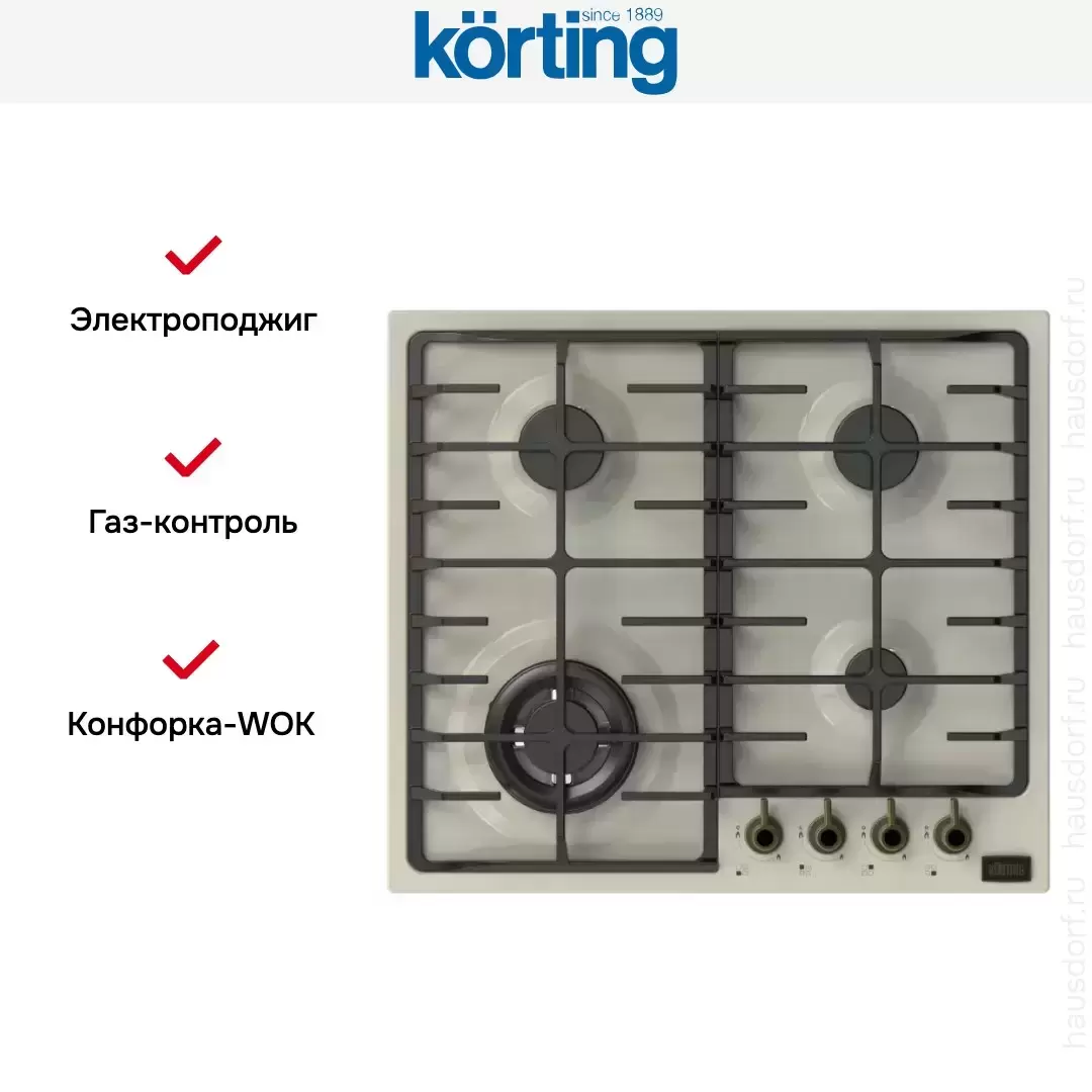 Газовая варочная панель Korting HG 674 CTRB — флагманская модель в линейке Korting (итальянского производства), варочная панель премиального сегмента.