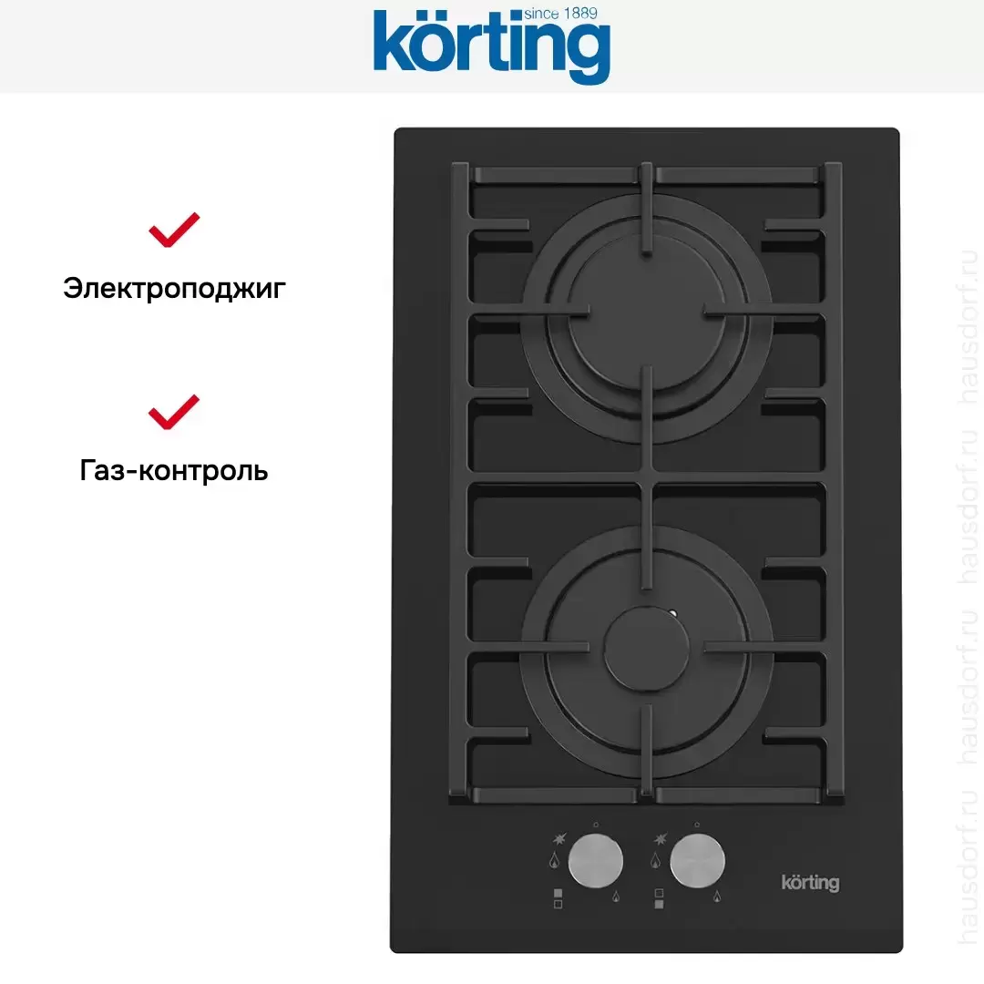 Газовая стеклянная варочная панель Korting HGG 3825 CN — флагманская модель в линейке Korting (итальянского производства), варочная панель премиум-класса.