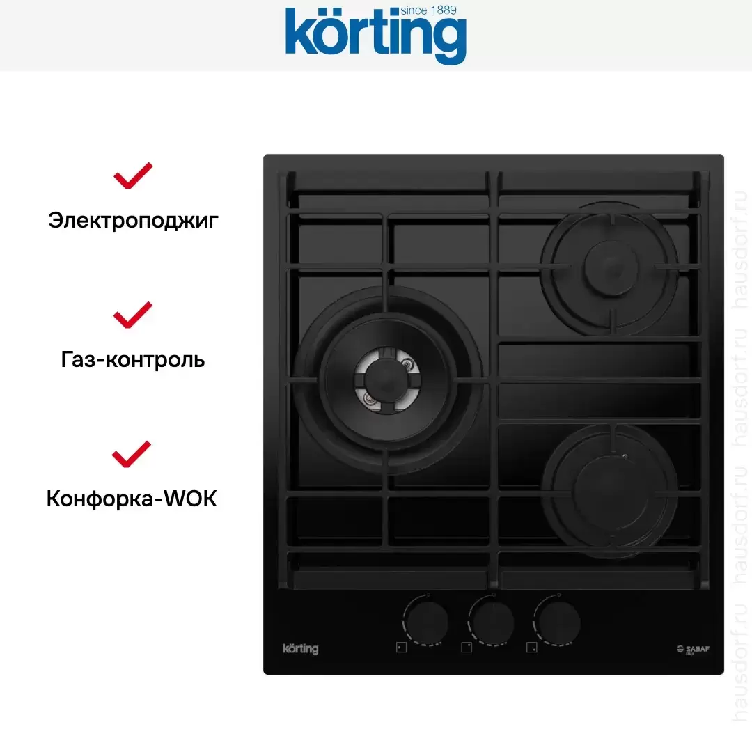 Газовая стеклянная варочная панель Korting HGG 4955 CTN — флагманская модель в линейке Korting (итальянского производства), варочная панель класса люкс.