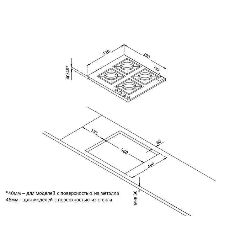 | Размеры ниши для встраивания (Ш х Г), см | 3x56х49 |
