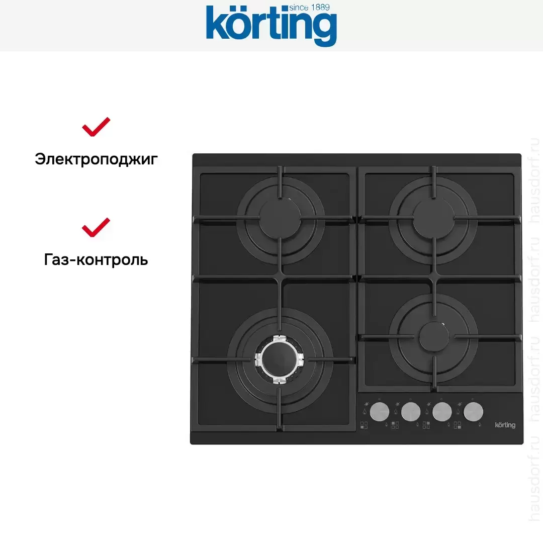 Газовая стеклянная варочная панель Korting HGG 6734 CTN — флагманская модель в линейке Korting (итальянского производства), варочная панель высшего класса.
