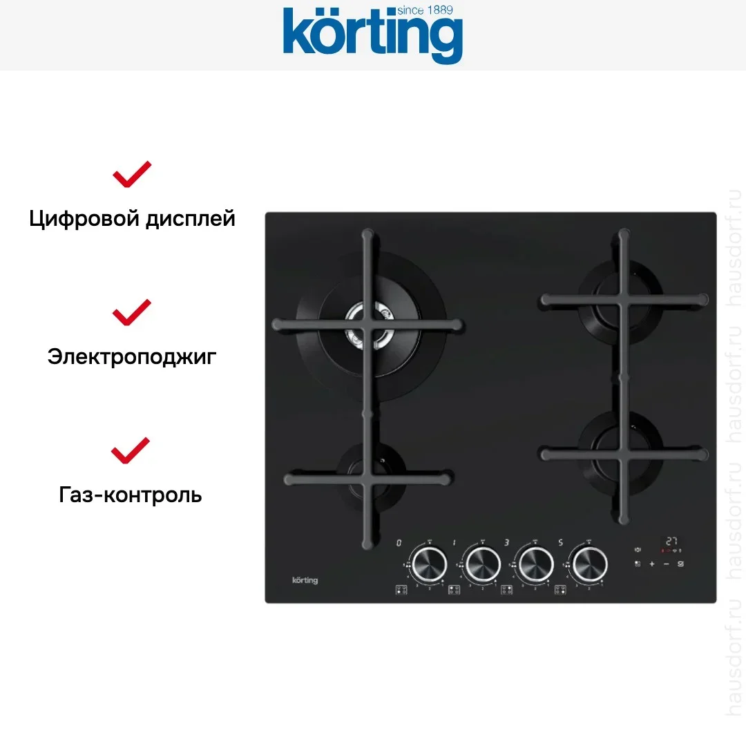 Газовая варочная панель Korting HGG 6766 ICPTN — варочная панель премиального сегмента, итальянского производства, сочетающая надёжность и передовые технологии Korting.