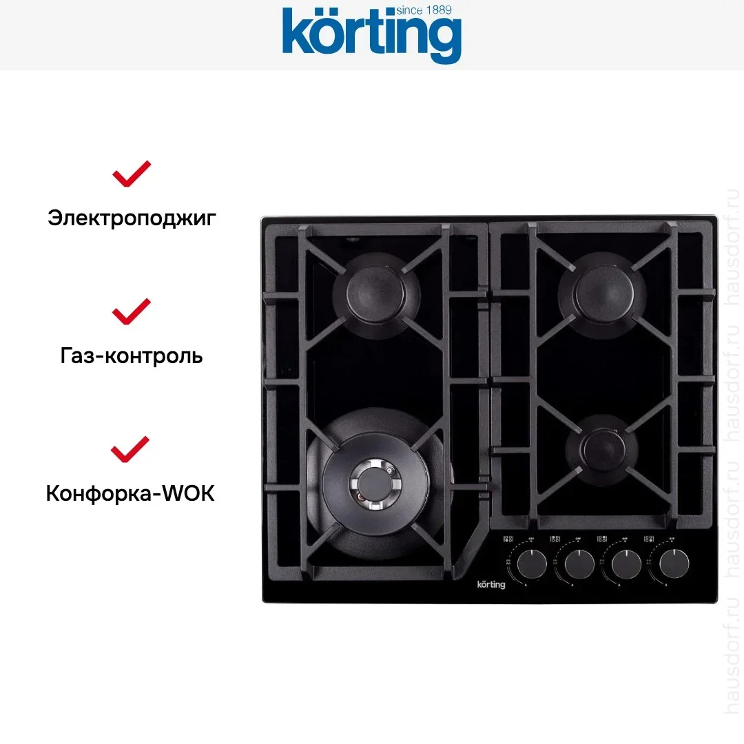 Газовая варочная панель Korting HGG 6919 CTN — флагманская модель в линейке Korting (итальянского производства), варочная панель премиум-класса.