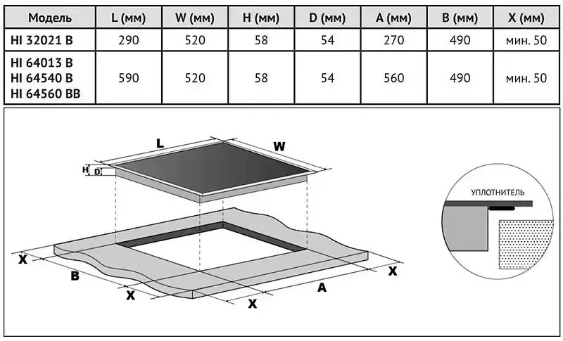 | Размеры ниши для встраивания (Ш х Г), см | 3x56х49 |