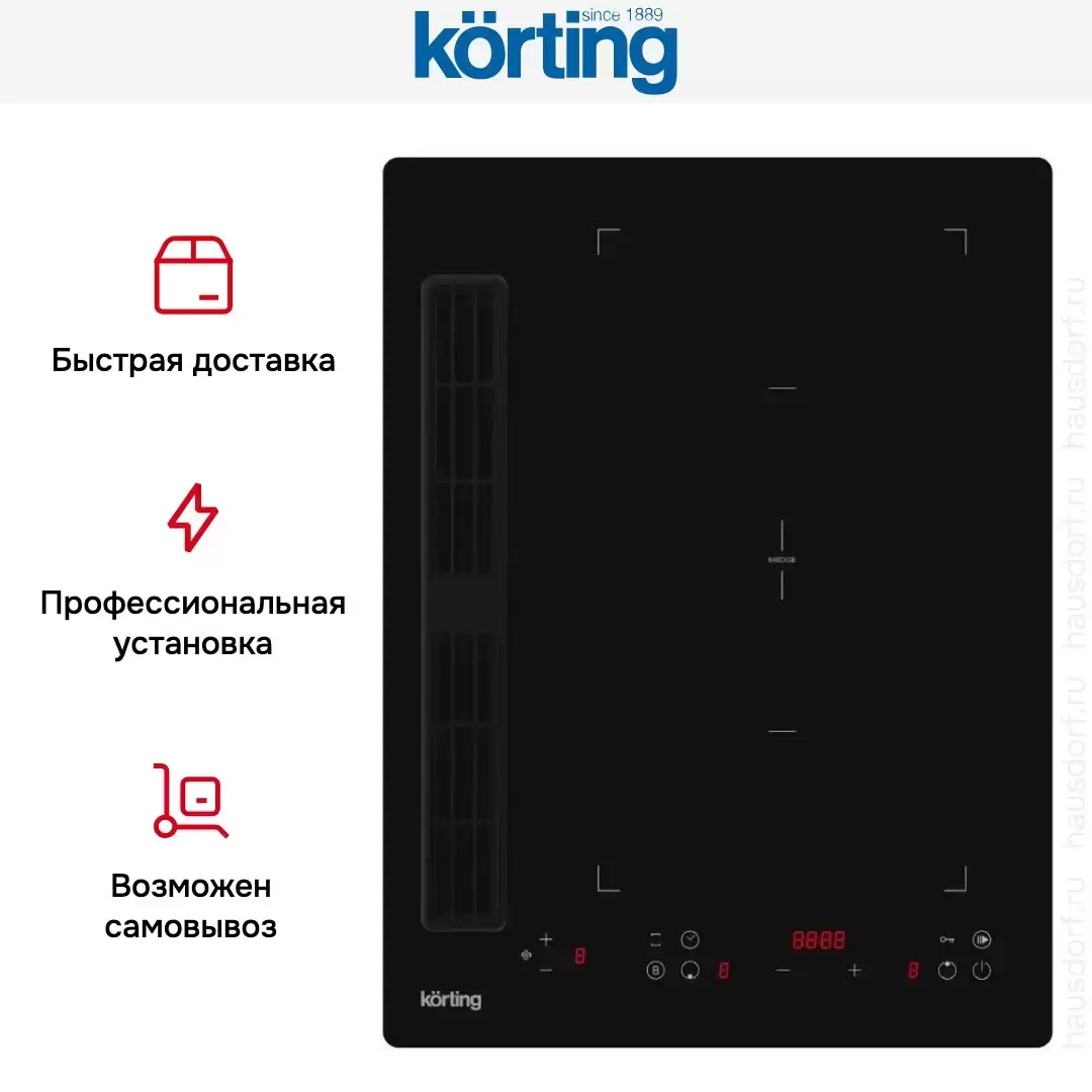 Индукционная варочная панель с интегрированной вытяжкой Korting HIBH 40980 NB — варочная панель премиум-класса, итальянского производства, сочетающая надёжность и передовые технологии Korting.