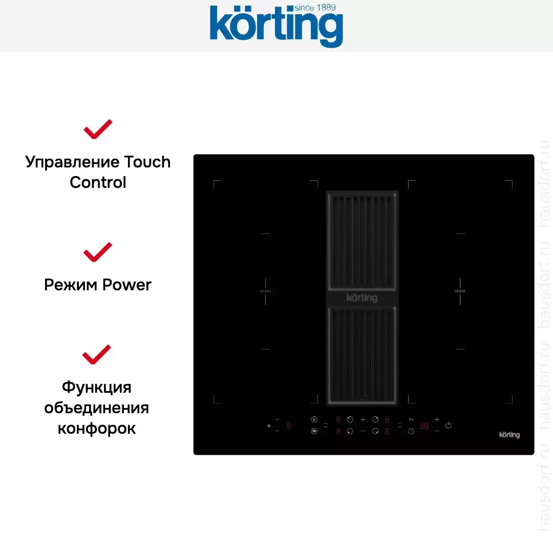 Индукционная варочная панель с интегрированной вытяжкой Korting HIBH 68980 NB — флагманская модель в линейке Korting (итальянского производства), варочная панель высшего класса.