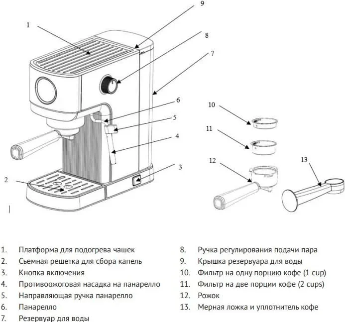 | Приготовление напитков | Эспрессо Капучино Латте Молочная пена Горячая вода |