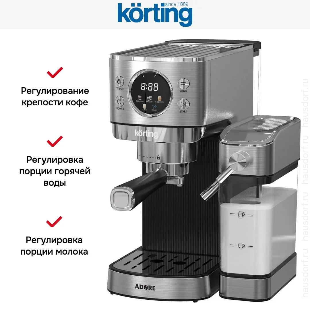 Кофеварка Korting KCM 1006 T Adore — флагманская модель в линейке Korting (итальянского производства), кофемашина высшего класса.