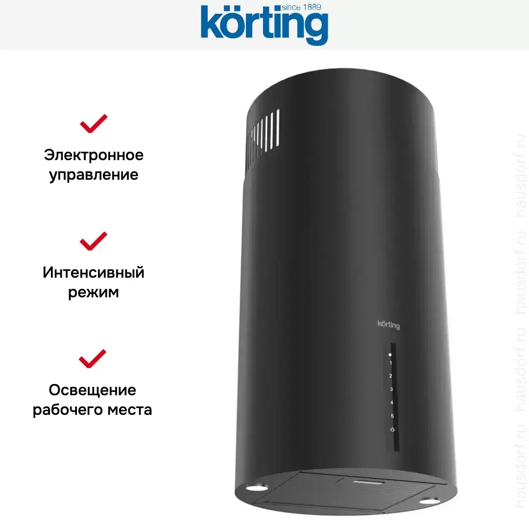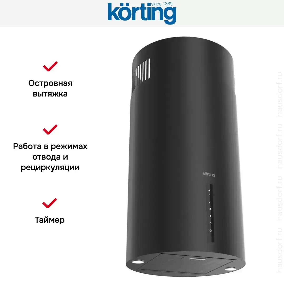 Островная вытяжка Korting KHA 39970 N Cylinder — кухонная вытяжка класса люкс от итальянского производителя Korting.
