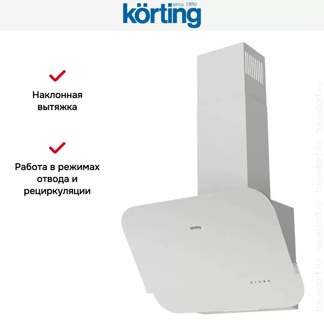Наклонная вытяжка Korting KHC 66135 GW — флагманская модель в линейке Korting (итальянского производства), кухонная вытяжка высшего класса.