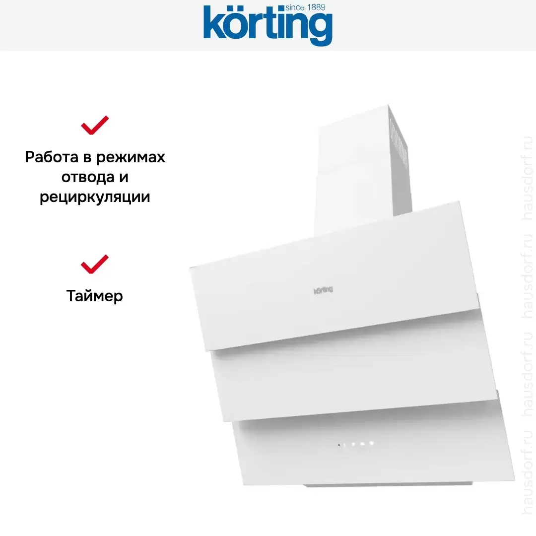 Наклонная вытяжка Korting KHC 68073 GW — кухонная вытяжка премиального сегмента от итальянского производителя Korting.