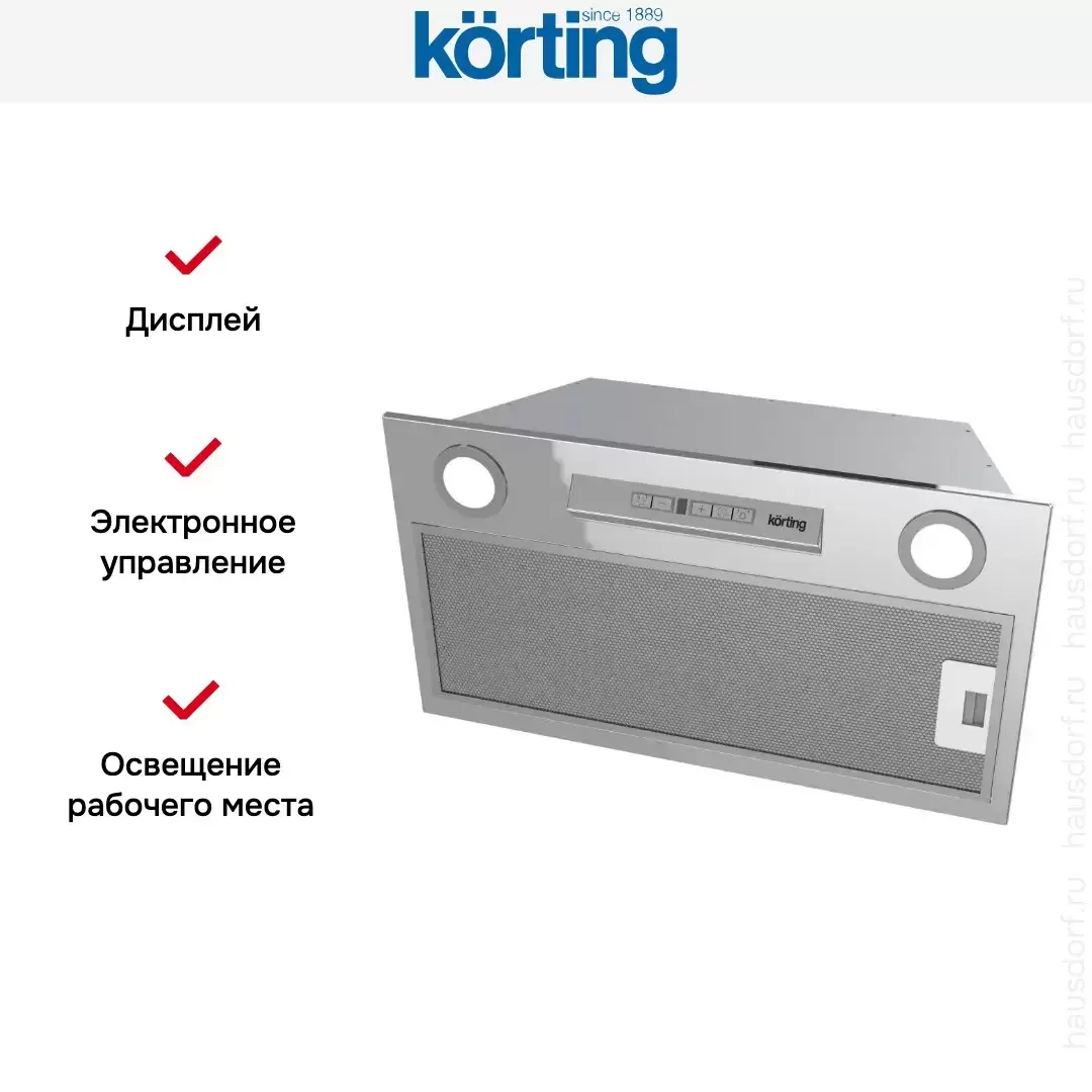 Полновстраиваемая вытяжка Korting KHI 6755 X — кухонная вытяжка премиального сегмента от итальянского производителя Korting.
