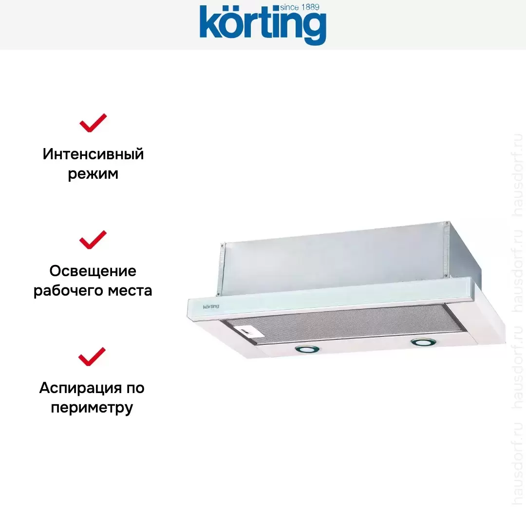 Встраиваемая вытяжка с выдвижным экраном Korting KHP 6617 GW — кухонная вытяжка высшего класса, итальянского производства, сочетающая надёжность и передовые технологии Korting.