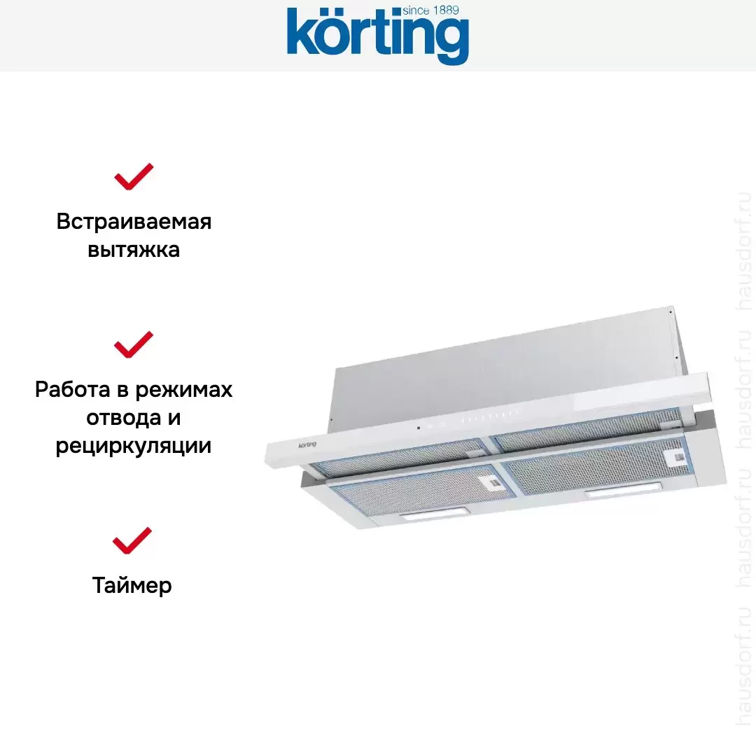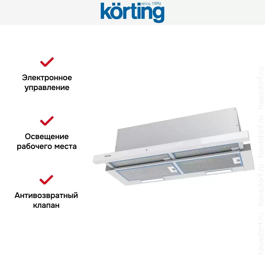 Встраиваемая вытяжка с выдвижным экраном Korting KHP 9975 GW — кухонная вытяжка высшего класса, итальянского производства, сочетающая надёжность и передовые технологии Korting.